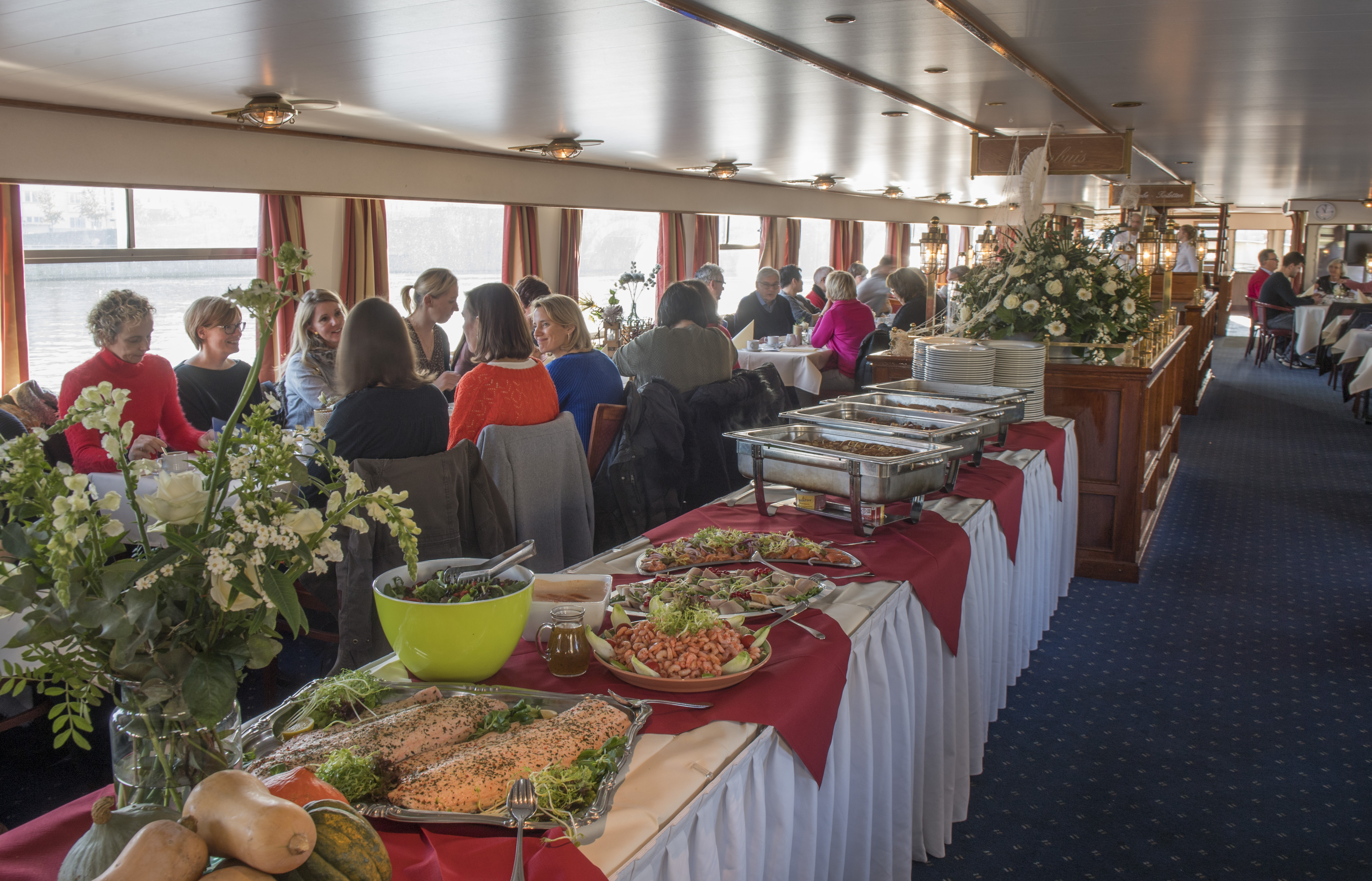 De boot maakt een leuke tocht over de Maas. Tijdens de boottocht presenteert de bemanning een uitgebreid brunchbuffet met diverse koude en warme gerechten. Koffie en thee is bij deze tocht inbegrepen.