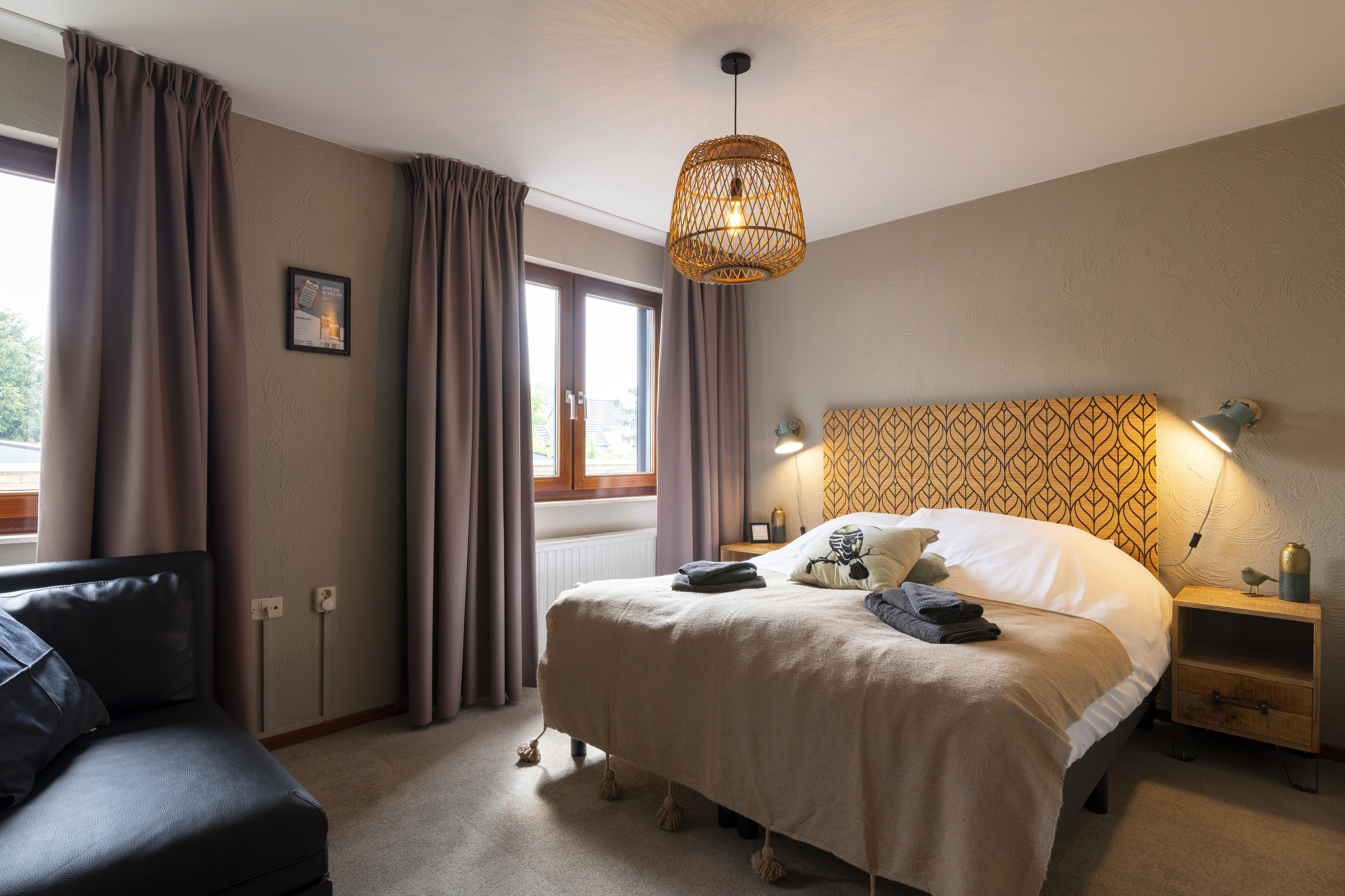 De kamers zijn landelijk en warm ingericht en beschikken over een luxe boxspring van 1,60 bij 2,00 meter. In de badkamer vind je een douche, toilet en een luxe badkamermeubel.