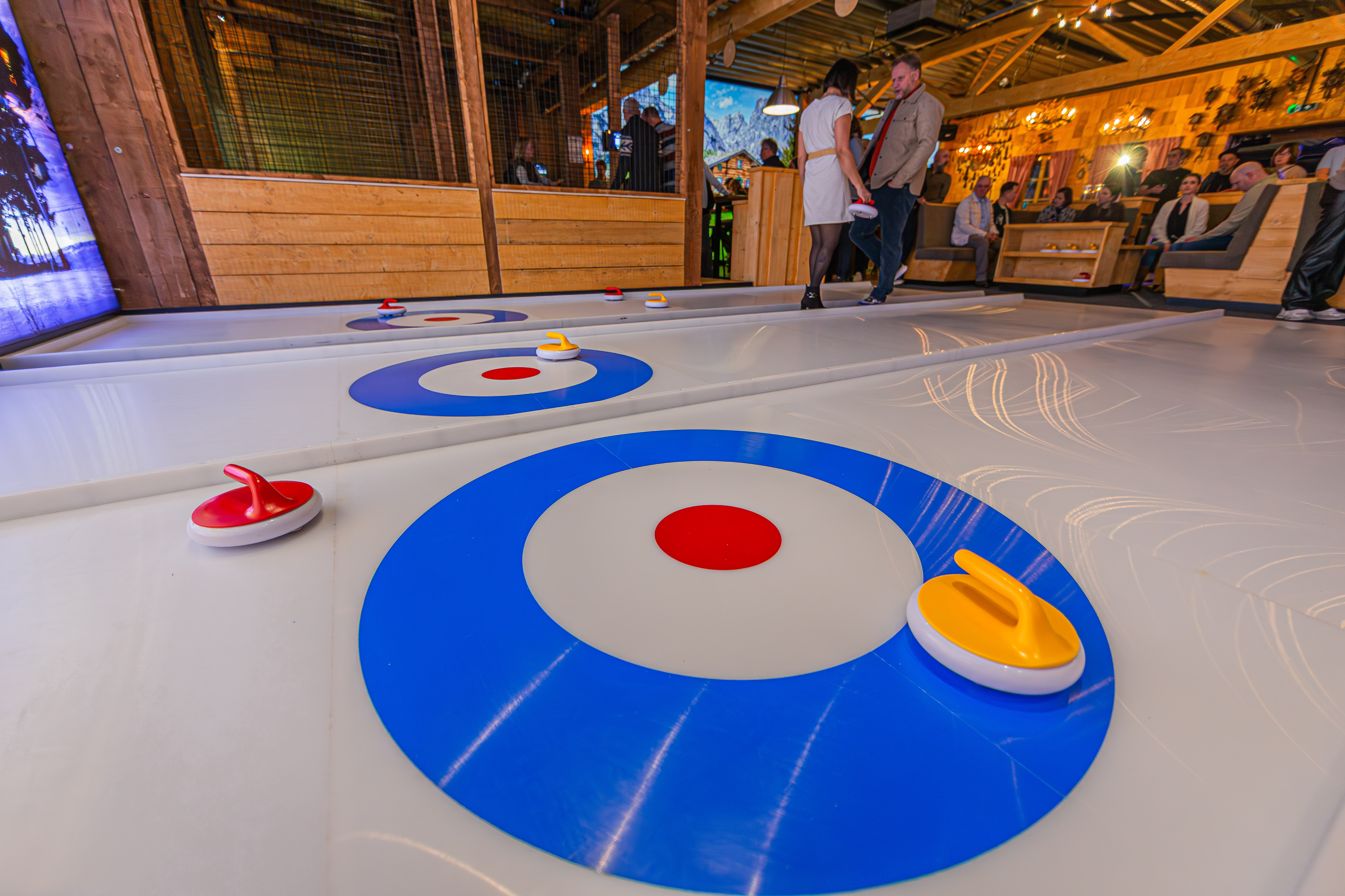 Je speelt op een kunststof curlingsurface die speciaal is ontworpen voor dit type groepsspel. De ondergrond voelt soepel aan, reageert prettig en houdt het speltempo hoog. Omdat er geen ijs nodig is, kan iedereen meedoen, ongeacht leeftijd of ervaring. Zo wordt curling een laagdrempelige én verrassend competitieve activiteit.