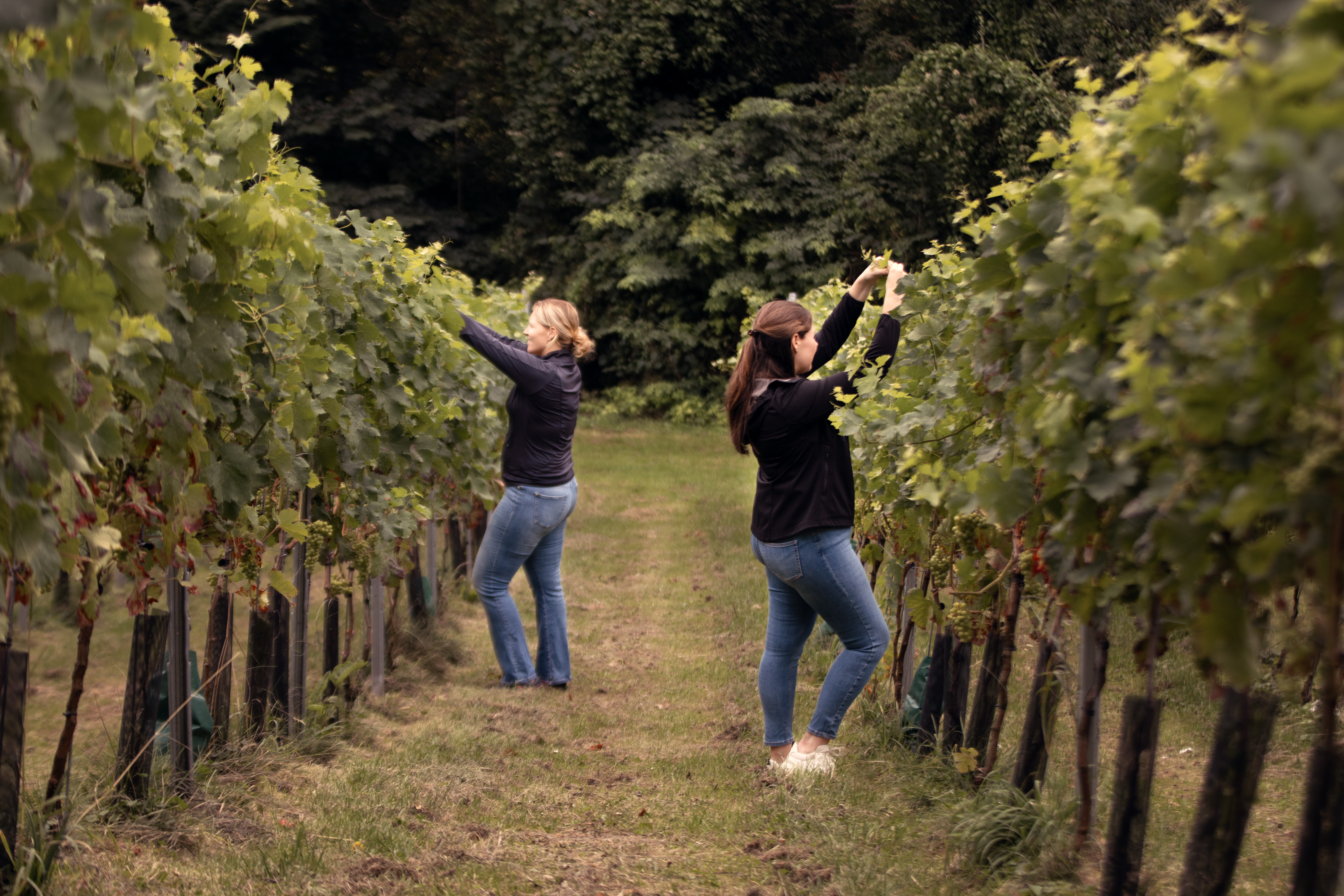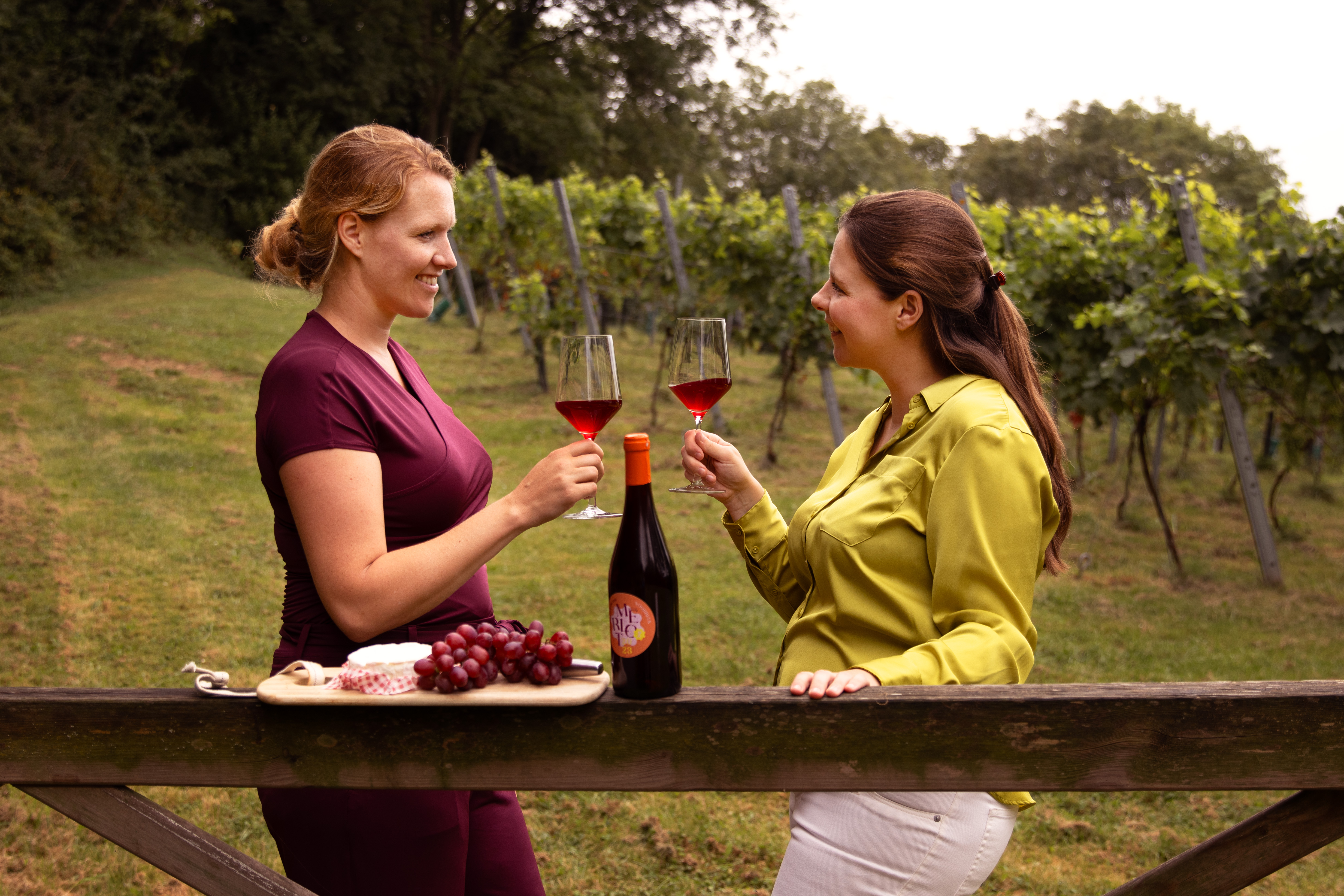 De keuze viel op de Merlot-druif, een Franse klassieker met authentieke eigenschappen. Er zijn 700 stokken aangeplant en naar verwachting kan in 2022 de eerste fles Merlot van Nederlandse bodem (volle grond) geschonken worden. In de wijngaard wordt zoveel als mogelijk duurzaam en circulair geteeld, zo vangt de valk de muizen en wordt voor de bemesting paardenmest uit eigen stallen gebruikt. De druiven worden met de hand geplukt.